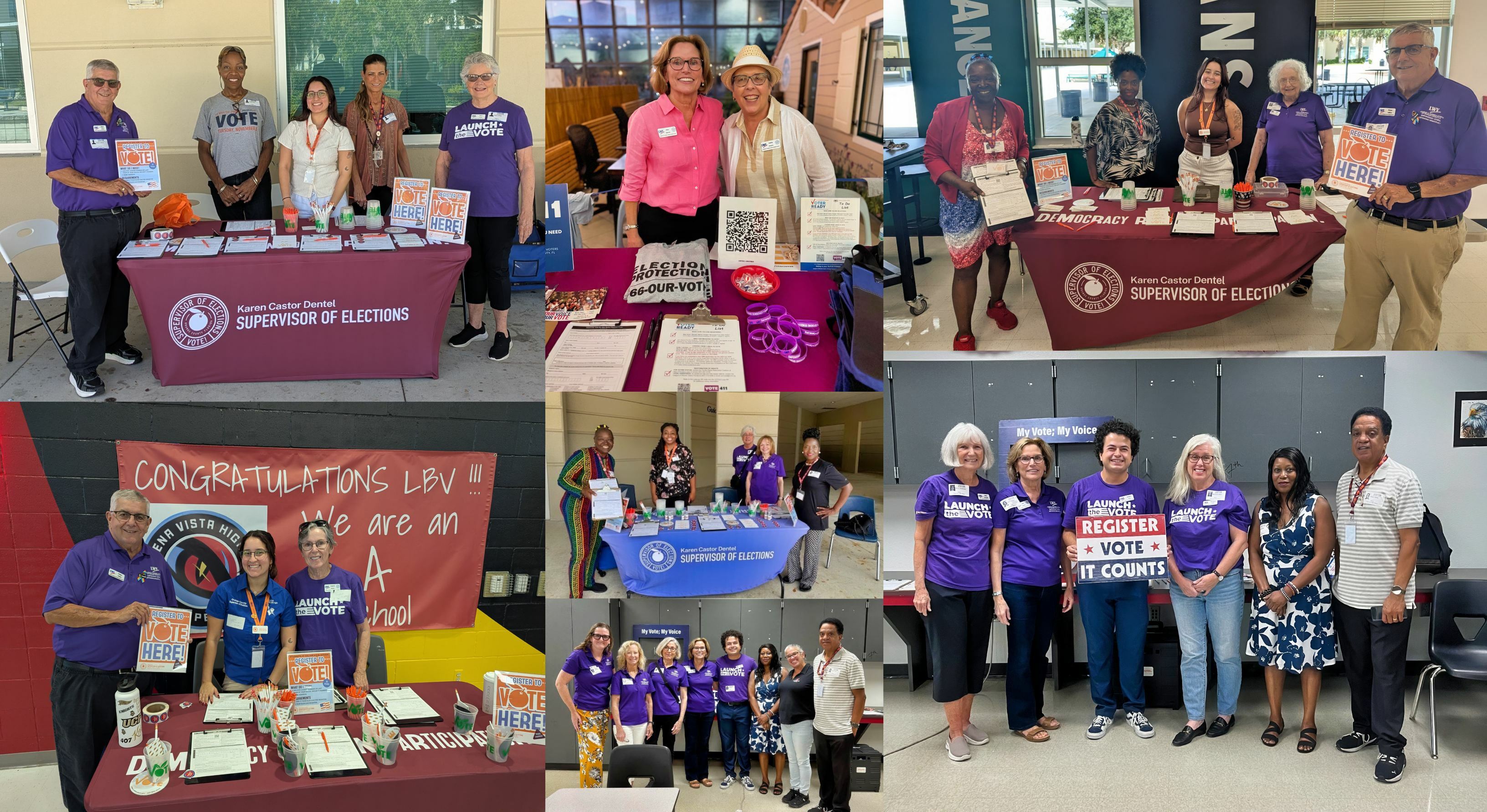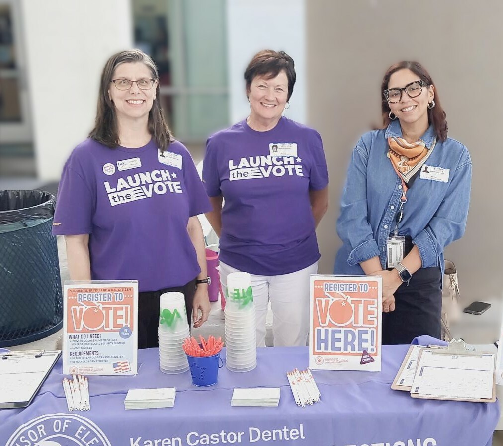 We'll make this a guessing game...can you name all the Leaguers shown in the pic? ;-) | | |  |  | This is Voter Services doing what they do best...showing up to empower voters at schools, community events, and often partnering with the SOE (Supervisor of Elections) office. Pause for a moment and clap for these dedicated teams who consistently honor the League's oath to democracy.